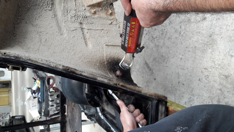 1°/ vis de la ceinture AR gauche ou a force de forcé comme un malade j'ai déssoudé le boulonexterieur.... on a du utilisé chauffe boulon a induction !! tres pratique plutot que d'utiliser un chalumeau lol