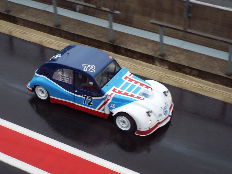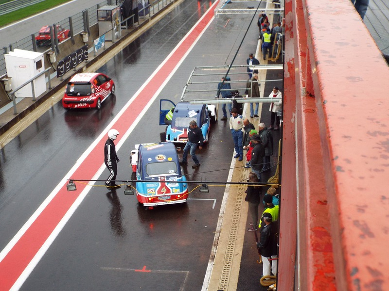 Mais cette année, pour augmenter le plateau, il y avait effectivement les voitures d'une coupe anglaise composée de C1 et avatars : Peugeot 107 et Toyota, ainsi que de deux Mini anciennes. Elles ont fait deux courses de leur championnat le samedi matin et ont été alignées avec les 2 CV, ce qui fait qu'il y avait plus de cent voitures dans la course de 24 h. mais le circuit de Spa est long.