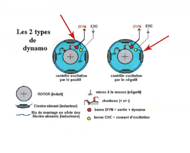 Super ! merci Fredjojo ! Heureusement pour moi les dynamo du spare et du moteur de l'Azam sont des Paris Rhône G 11 R 111, ainsi que le régulateur. Je ferai quand même le test pour savoir comment se fait l'excitation + ou - par curiosité . Merci pour la doc qui explique bien comment remagnétiser les masses polaires.
