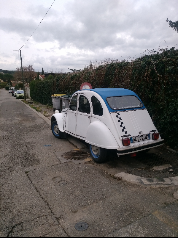 merci..c est une 2cv GT ..c est une citronopipo :oops: trève de plaisenterie,cette deudeuche me donne entiérement satisfaction..le moindre faux plat ou cote j enfonce l accélérateur et le mini-turbo(le double corps) fait grimper tout ça ventre a terre :D..Mais ques ce que je suis bien en petite route de campagne ,croisant a 50 km/h en respirant l air des campagnes les champs de lavande et thym de la garigue provençale et tout en roulant je rève aux 2cv des films des cinéma AUDIARD des louis de funes des bourvils des 007 roger moore je me marre seul ,huum le top du top..J ai pourtant eu une porshe 911 sc de 1983 j ai eu un gros 4x4 patrol 3.0 di ,mais rien ne m enlèvera les 2cv.. :pouce:MA FEMME changera sa voiture un jour mais moi je continuerai en rouler en deudeuch..maintenant jusqua ma retraite et jusqua ma mort et n importe type de 2cv..peu importe que ce soit la 2cv 6 la 2cv A, la AZ, la AZAM aller je vais étre gentil pour aussi la 2cv 4 que je boude un peu mais sa fait rien sa reste une deudeuche..