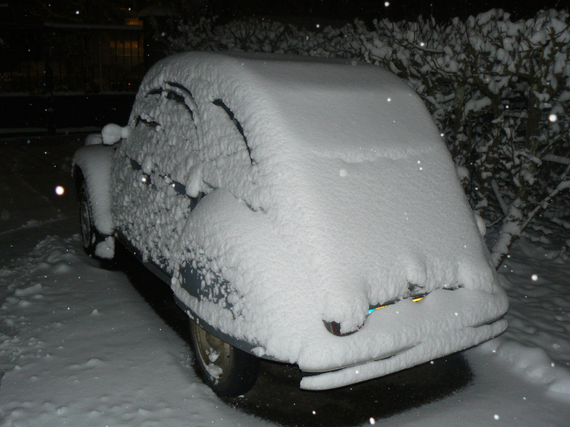 Voici la 2cv sous la neige ce soir ...