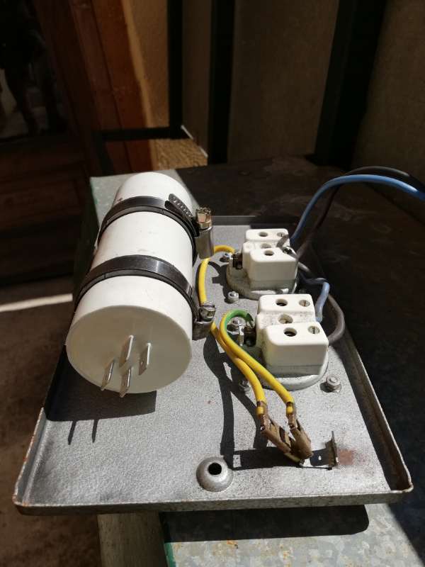 Après la question peut être aussi de savoir pourquoi le condensateur de 50 uf à explosé ? peut être faudrait il ouvrir le moteur électrique..;