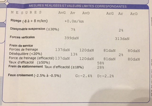 Mais concernant les mesures tests du contrôle la suspension est bonne :D --> ce qui semble indiquer que les 2 sont HS, et qu'il y a aussi des amortisseurs à friction