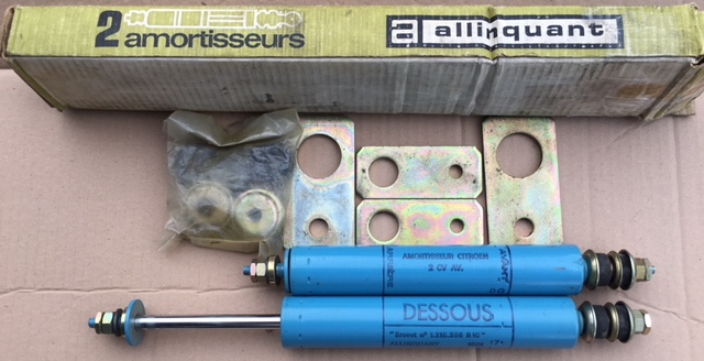 Ces amortisseurs sont donc des accessoires montés à l'époque, et ils ne sont pas montés comme ceux qui équiperont la 2 CV à partir de 11/70. Je ne pense pas que tu puisses en retrouver.