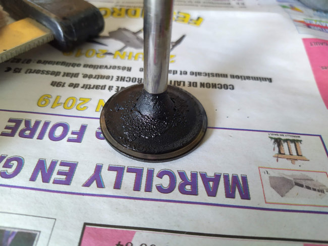 Au démontage la chambre de combustion est peine de calamine, en appuyant sur la soupape d'admission de l'huile coule. Le phénomène est identique sur les 2 culasses uniquement sur l'admission....