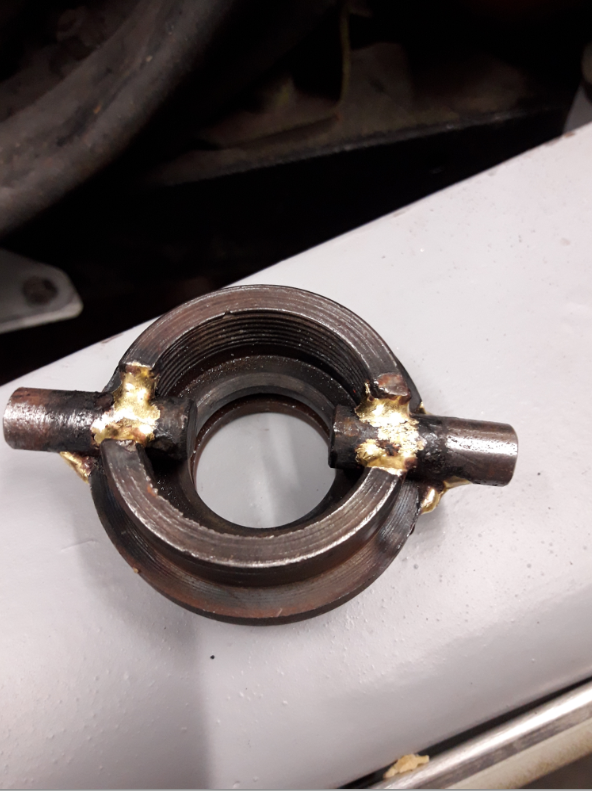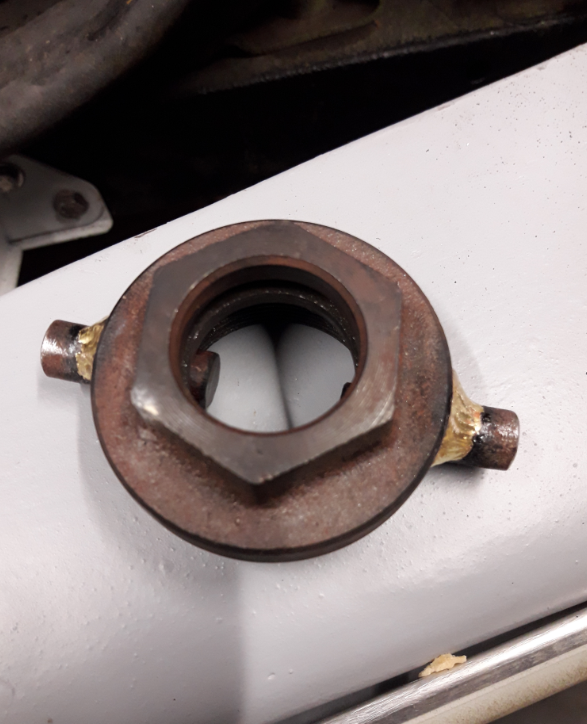 Un outil pour démonter l'hélice fait avec l'écrou d'un piston de cric hors d'usage