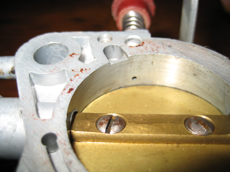 mon réglage carbu, c'est pas encore ça... Je l'ai redémonté pour être bien sûr que le papillon est au ras du 1er trou (en fait sur mon carbu il y a 2 trous exactement au même niveau. ça a l'air bon.