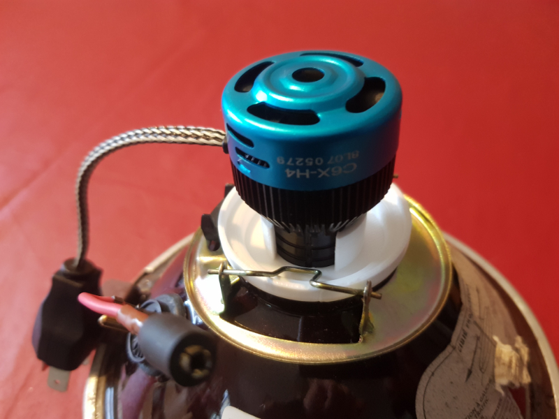 Si le montage est validé en terme d'éclairage et que la collerette se déforme, il me sera toujours possible d'acheter des adaptateurs métalliques CE->H4 qu'on trouve sur le net pour une dizaine d'euros. Ou bien en tailler dans des collerettes d'ampoules CE.