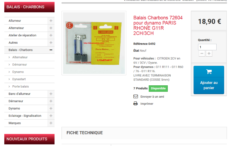 C'est toi qui voit !! , mais tu à surement raison ,ancêtres on dirait l'origine .Marc 77 a écrit :Chez Elec Ancêtres les consommables ont l'air d’être de l'origine ( pas si sur chez Cipere ) et il faut que je commande aussi des charbons pour le démarreur .