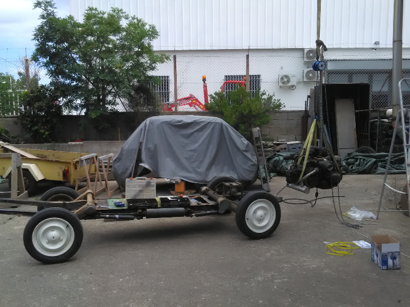 Après l'avoir sortie d'une grange: une bonne cosmétique sur la carrosserie, il y avait de tout... du scotch, du papier aluminium, du mastic, de la fibre de verre, et le tout bien camouflé; Dessous, de la rouille et des trous. L'ancien proprio, un monsieur âgé ne le savait pas, c'est un "pro" qui lui a fait ça! N'ayant pas les moyens de payer un carrossier, j'ai acheté un poste à souder, un pistolet a peinture, beaucoup d'anti-rouille, de la peinture, quelques pièce et je m'y suis mis ( à la base je réparais les bateaux, j'avais quelques notions). Je suis pas fière de tout ( j'ai du faire un peu de résine par çi par là en attendant mieux, quand mes compétences de soudure était dépassées) mais la rouille est traitée et c'est mieux qu'avant...
