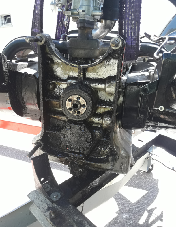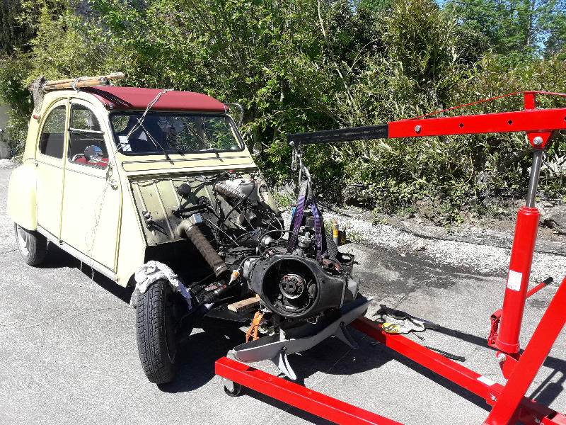 Projection d'huile par le volant moteur de " Paulette " 2cv6 1977