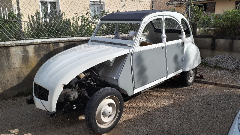 C'est clair que c'est sympa ton bi-ton, tu as fais un remontage à blanc pour voir si tout colle ? Je vois que tu as pas remonté tes vitres pour l'instant. Protège bien tes ailes arrières si elles sont fixées, car si ta vitre de custode vient à t'échapper cela serait bête de taper ton aile fraichement peinte