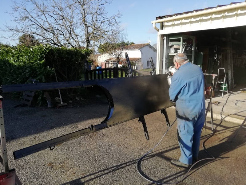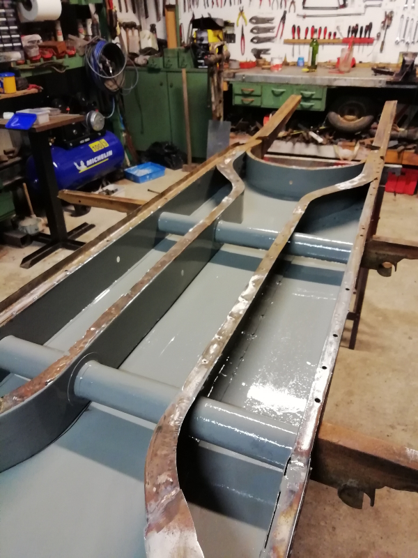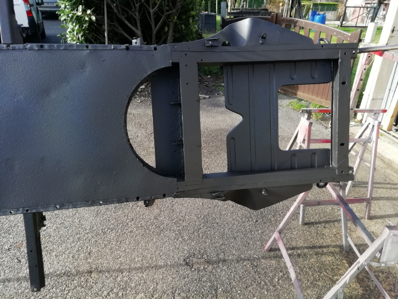 Cependant, le châssis n’est pas pourri. Des plaques de renfort sont soudées au endroits « fragilisés » et les tôles changées. Maintenant, la seule modification notable va être la réfection de la tôle de support du frein à main.