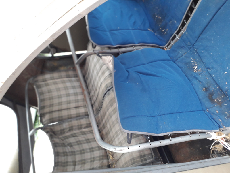 Est-ce qu'elle a une sur-capote ? parce qu'une capote bleue (il me semble !) à petite lunette :shock: Et, si tu changes la capote, garde bien tout l'accastillage de la vieille qui ne se refabrique plus : embouts en alu des barres, crochets de coté, etc.
