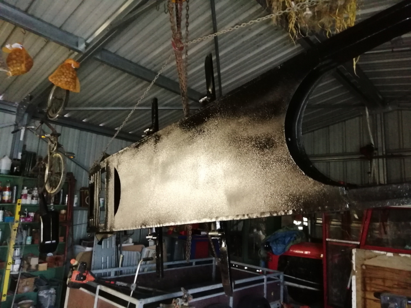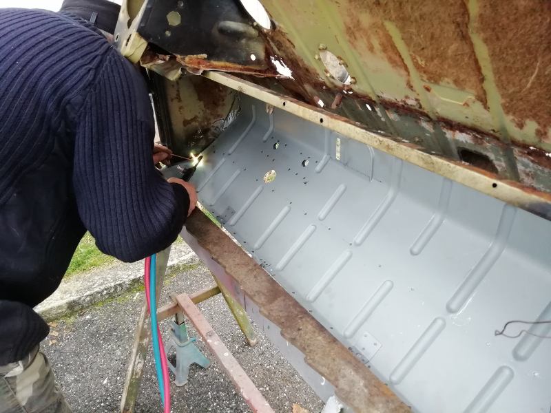 Cependant, le châssis n’est pas pourri. Des plaques de renfort sont soudées au endroits « fragilisés » et les tôles changées. Maintenant, la seule modification notable va être la réfection de la tôle de support du frein à main.