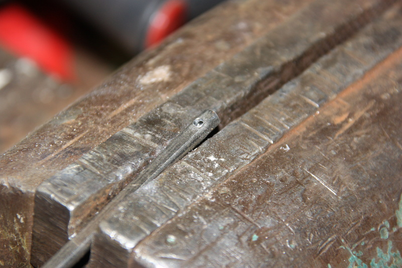 marquer d'un coup de pointeau la partie plate de la tige à 6mm du bout et percer un trou de 2