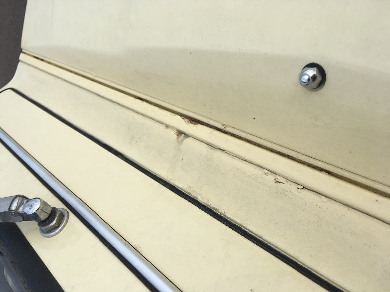 La charnière de la baie de pare prise, qu'il faut traiter rapidement, il y a déjà des boursouflures.