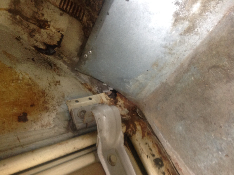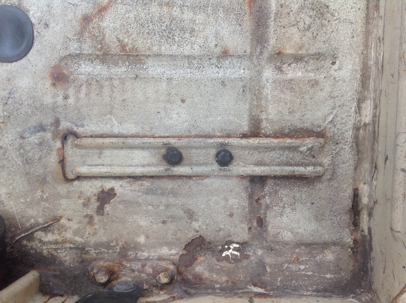 Sous la tôle tu va trouver les planchers latéraux et le plancher de pédales bien rouillés et percés.