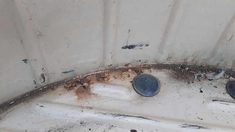 On peut les réparer. Tu découpes, ou tu le fais faire, les parties rouillées, percées, pourries, d'une forme simple : rectangle, carré. Tu coupes une tôle de 0,8 mm de la forme en question, tu soudes tout autour au Mig, tu meules les soudures, tu passes une peinture antirouille. Et voilà, c'est réparé.