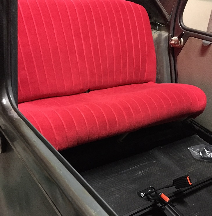 Remplacement des selleries en velours rouge du plus bel effet (meilleure qualité que celle d'origine) avec une mousse de 5 cm d'épaisseur !