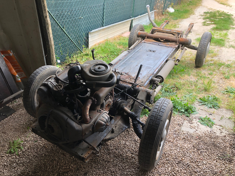 Le démontage le la belle s'est fait avec de nombreuses photos, un marquage des câbles électriques et repérage de l'endroit ou ils passent. Du côté technique, je n'ai aucune assurance que le moteur fonctionne mais il ne devrait pas y avoir de raison (bien que le moteur des 2CV4 présente une faiblesse). Côté environnement moteur, échappement, roulage, suspension, il y aura du travail mais je reste zen pour l'instant. :cafe: