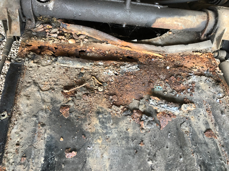 Côté châssis, celui-ci est marqué et semble déformé à un endroit, la rouille est plutôt importante et pourrait être perforante par endroit, mais il faut que j'aille plus loin dans le diagnostic.Changer le châssis n'est pas l'option première, mais il faudra peut être y passer. :pouce: