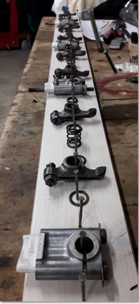 L'empilage sur l'axe de culbuteur est fait reste à mettre les joints ( que je n'ai pas ) et à serrer le tout , et peindre l'extérieur de la culasse en vert moteur .