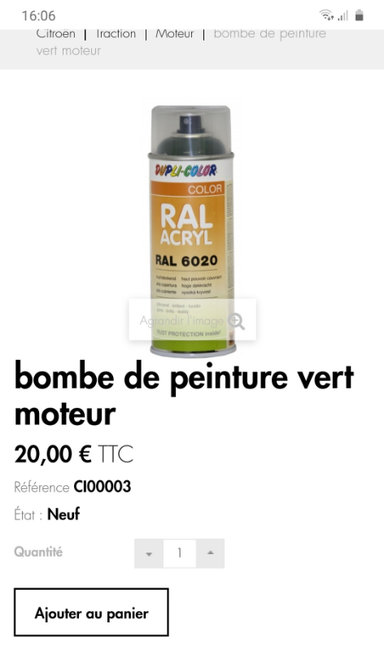 Mon pot de vert moteur vient de chez le Belge , et je le passe au pinceau il a un beau tendu et s’applique relativement facilement , pour se qui est de l'aérosol vert 6020 de chez Dupli-color c'est un excellent produit .