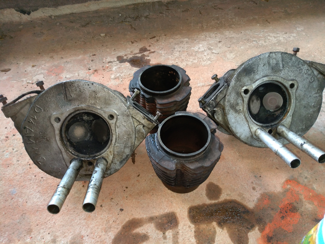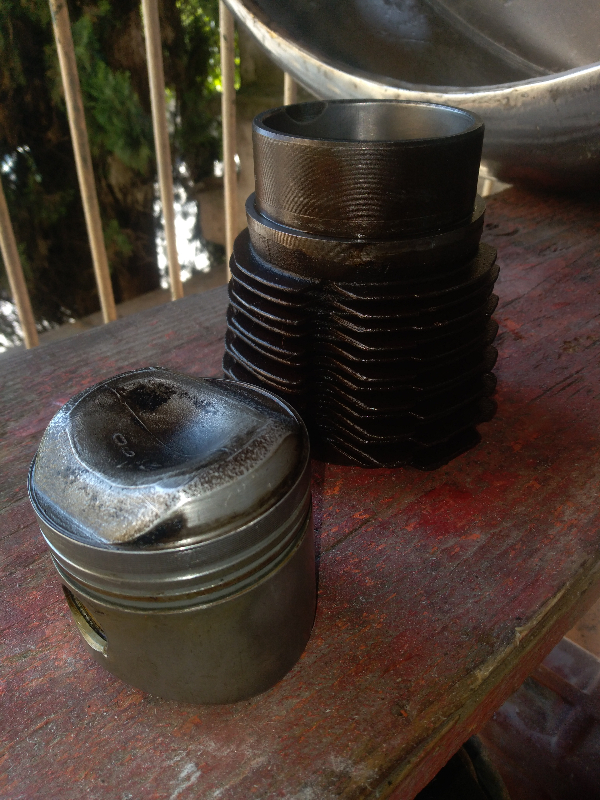 donc démontage radiateur, culasses, pistons, chemises...pas de jeu dans les bielles....et chemises pistons pas mauvais au dire du pro...donc décrasser dans un mélange gasoil essence (terrible) et acheter joint, segment...