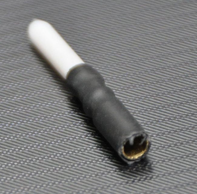 monté sur une cosse Ø 4 femelle et enrobé de gaine thermorétractable (difficile à détecter au premier coup d'œil)