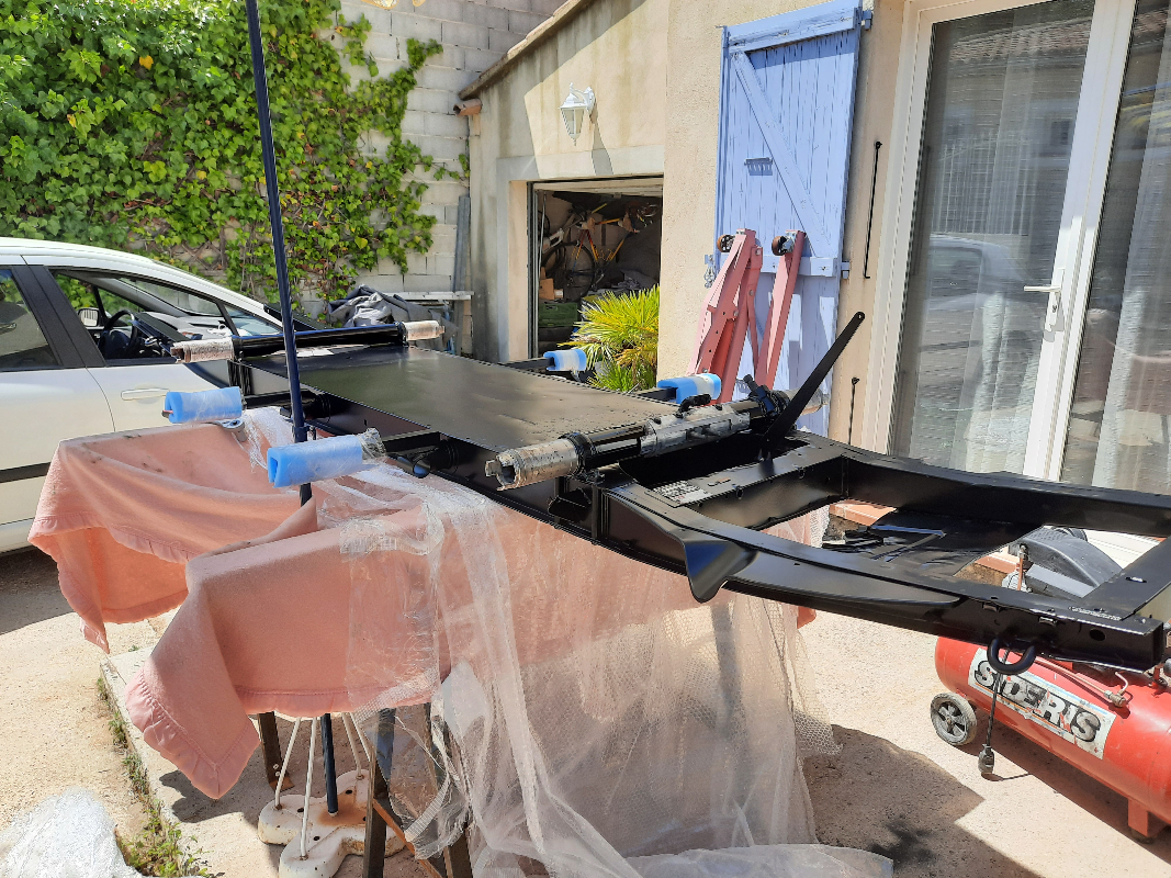 , la cabine de peinture ces sur mon lieux de travail donc sa me permet de pas mal avancer , pour le sablage mon frère travaille dedans donc sont patron m'avait fait un prix pour le sablage l'antirouille et la peinture époxy j'avais payé 150 euros le tous mais sinon sa m’aurait couté beaucoup beaucoup plus