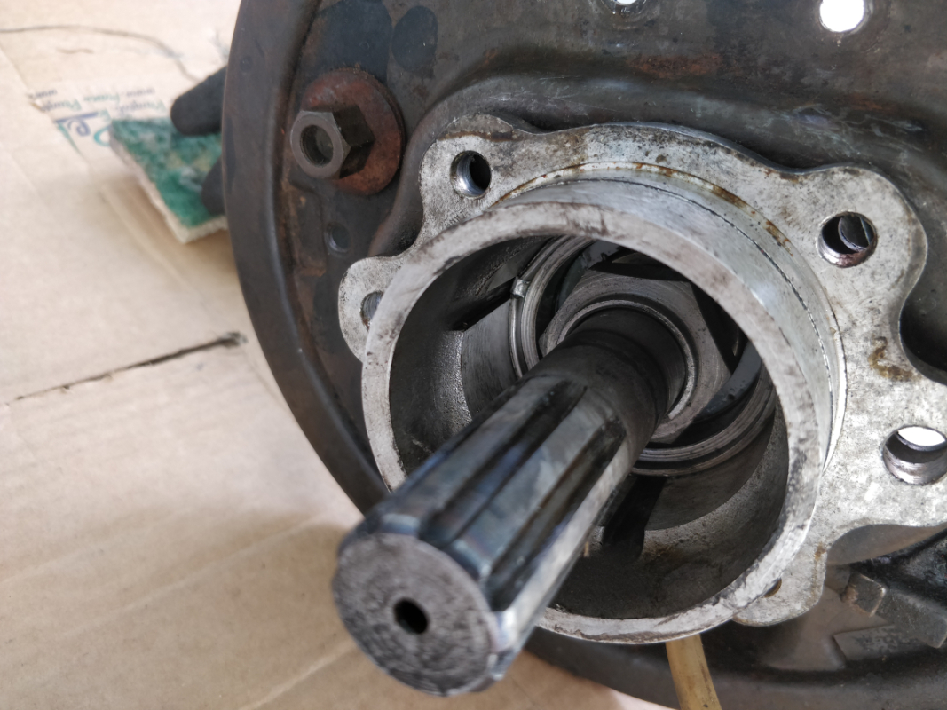 j'ai mis sous presse pour expulser l'arbre ,resultat : plaque de frein deformée :boulet2: