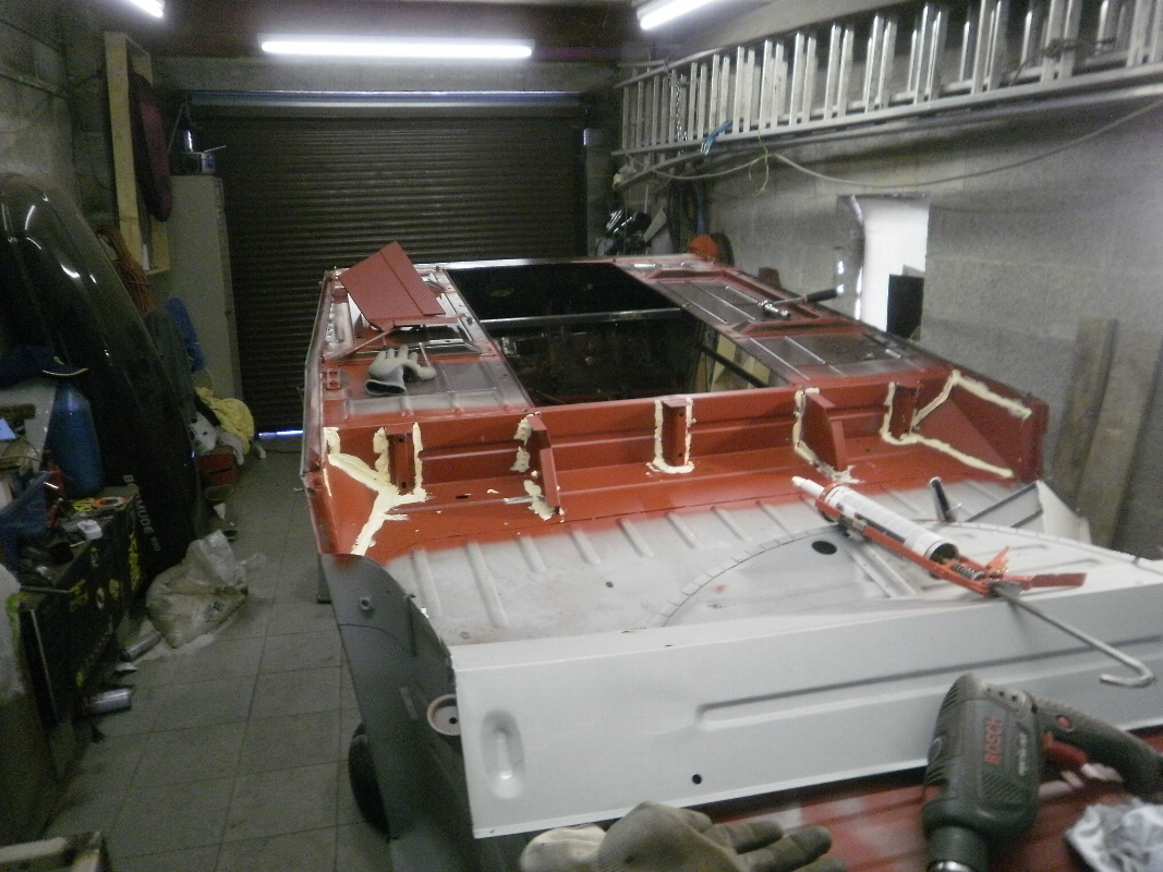 La caisse semblait bonne mais au cours du démontage, j'ai eu pas mal de problèmes remplacelent des quatres montants reliant les bas de caisse sur une hauteur de 20cm, Gouttière bas de caisses, tois plancher, toute la caisse arrière, face arrière, queue de pies etc.