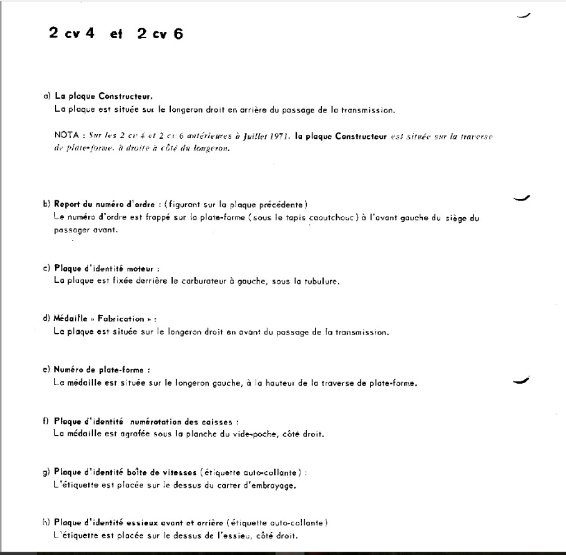 Les plaques a rechercher pour une 2cv de juillet 1980 sont elles seulement celles sur le longeron?