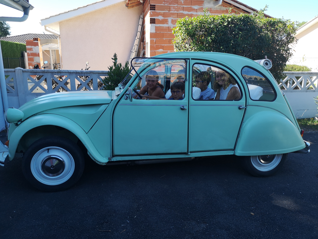 Bonjour je me ptenome Romain j'ai 43 ans, je viens de Gironde et je suis heureux possède par une 2cv 6 de 1980 de couleur vert blanc(pas celle d'origine).