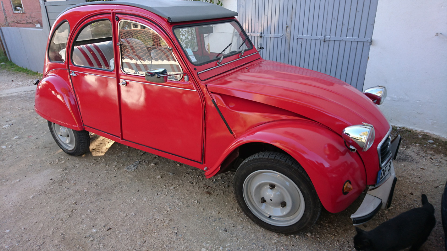 Je suis Dan. Je nous possédons une 2cv de 1981 rouge que ma femme utilise tout les jours pour se rendre a son travail et autre, je l'ai entièrement restauré il y a deux ans planchers peinture moteur....