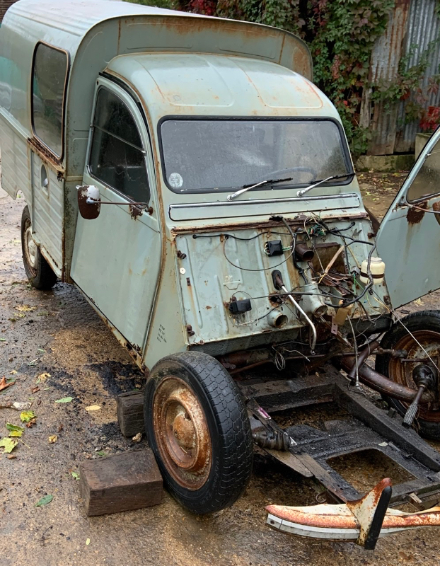 Y’a du taf le châssis est cassé en 2 et beaucoup de tôle à refaire