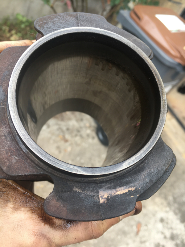 En démontant la culasse, la chemise est venue avec... allez pourquoi pas, au point ou j'en suis voyons donc ce qui se cache derrière tout ça...