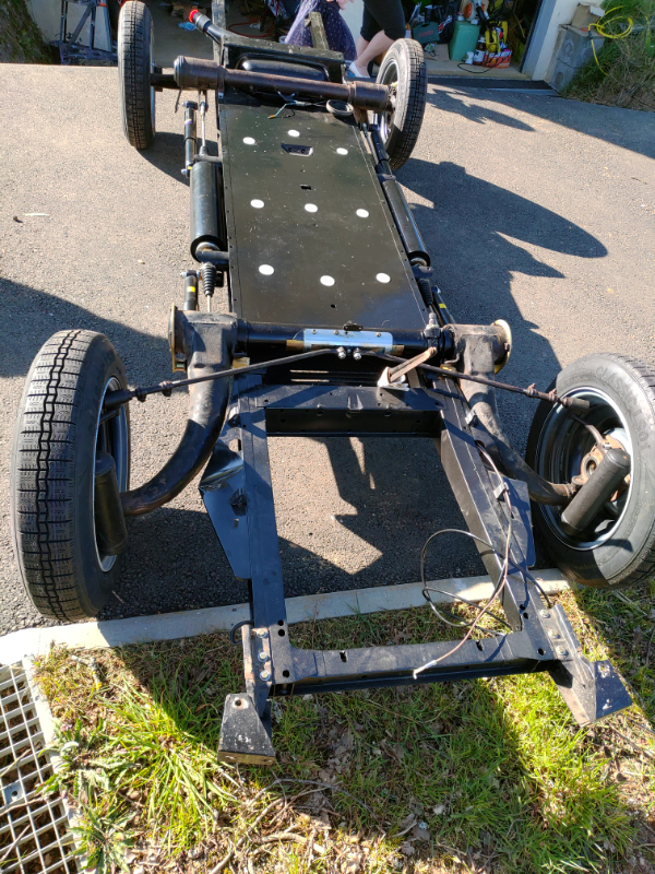 Après quelques années d'attente, j'ai repris le remontage et ça avance plutôt bien, les trains roulants, moteur + boite, j'ai presque fini la partie châssis, je vais m'attaquer ensuite à la carrosserie et il y a aussi du boulot ...