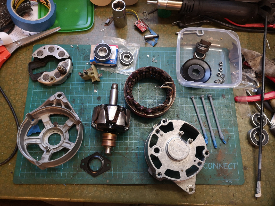 Vu que j'avais un vieil alternateur Iskra qui traînait sur l'étagère, je me suis dit qu'il serait intéressant de le remettre en état et d'en documenter le processus :volant: