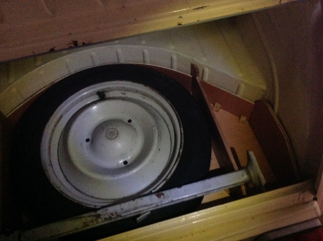 Bon ben j'ai continué a retapper mamie ! J'ai trouvé une roue de secours sur le bon coin, fait des encoches pour que le cric ne se balade pas, fabriqué une calle et voici le résultat du rangement de coffre :