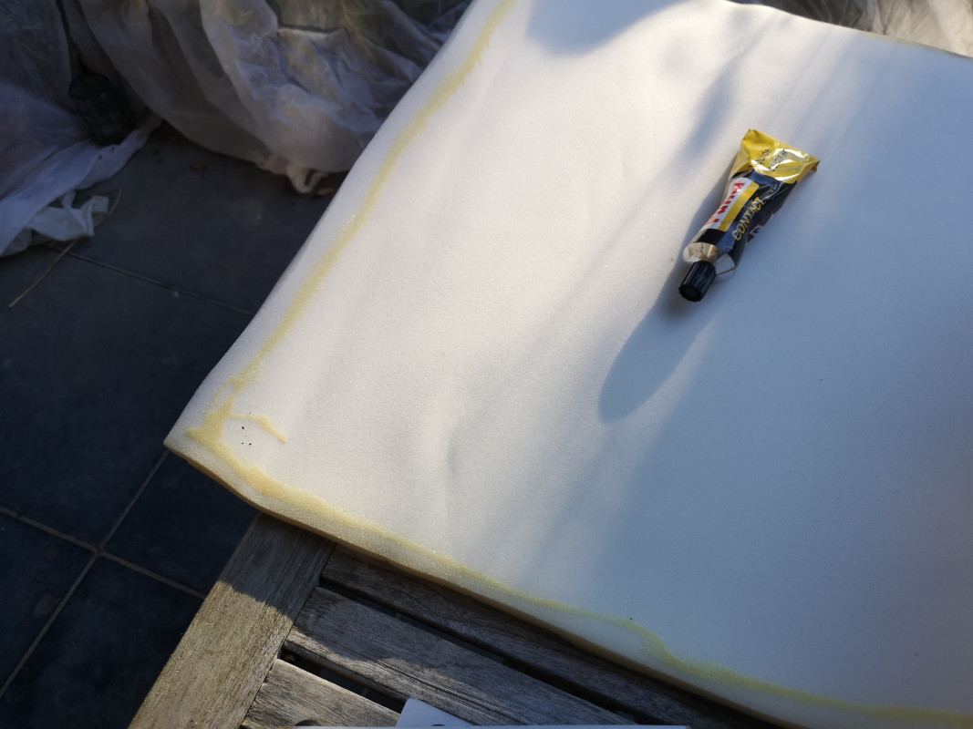 Le dossier est très serré, possible que ma mousse soit trop épaisse... On reprend les mêmes et on recommence pour l'autre siège!