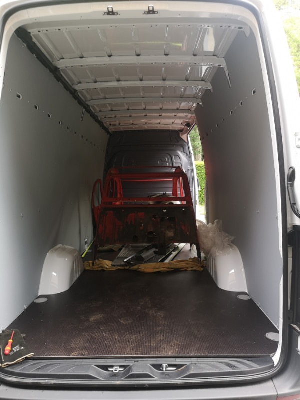 L'ancienne caisse est donc chargée, avec tous les éléments de carrosserie qui vont avec... Et on se met en route pour Bouillon, avec un ami qui a gentiment pris congé pour venir avec moi