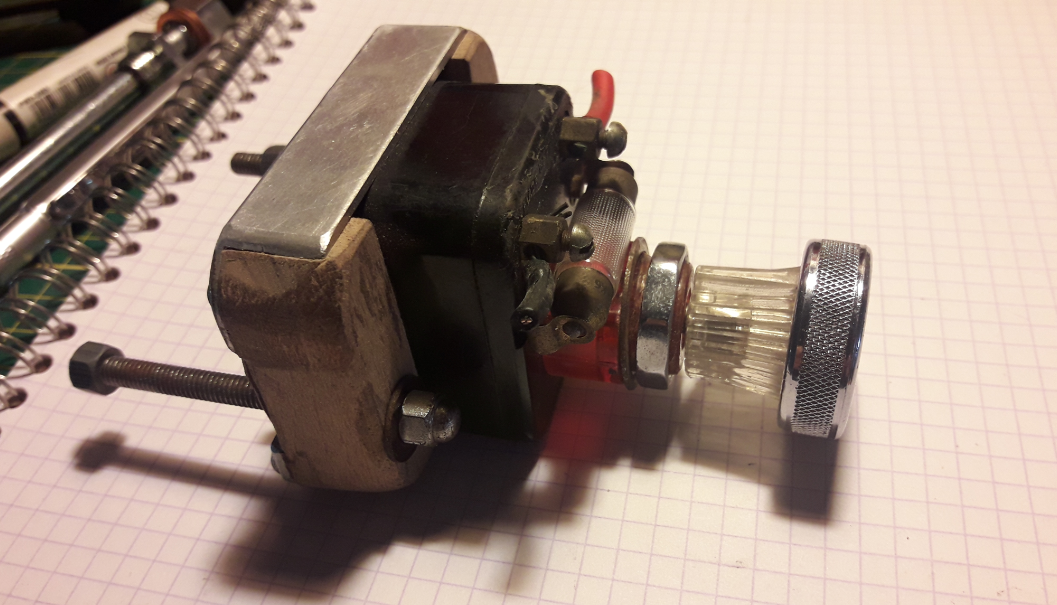 Celui ci fonctionne mais le bouton est vraiment mal en point et le filetage pour serrer l'écrou lui est hors service ( d’où le bricolage ) même sous perfusion l'issue est fortement compromise je crois que je vais lui allumer sa dernière cigarette :pleurs: bon pas de remords il en aura profité un coup à gauche , un coup à droite :danse: . [/i]