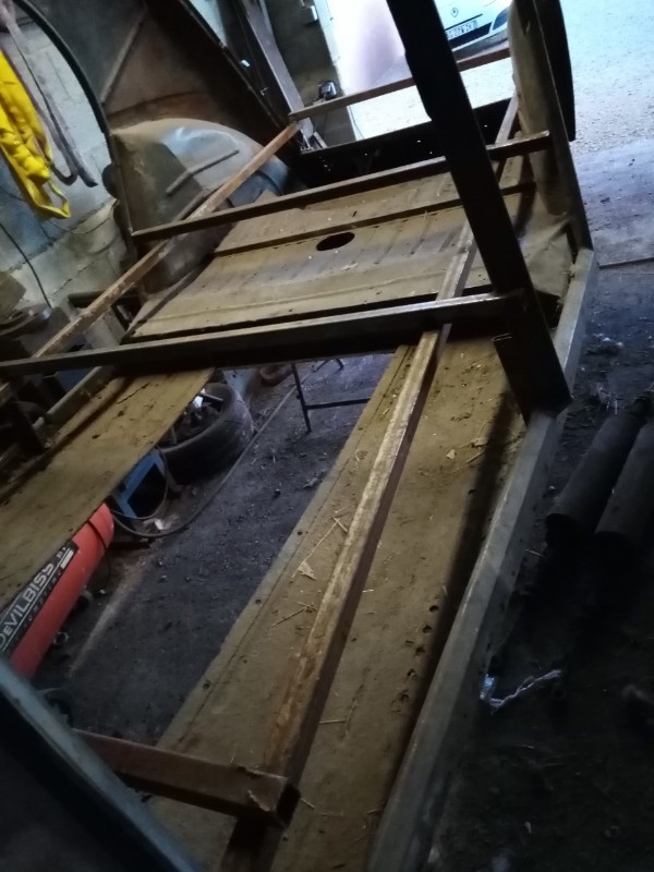donc en photos la suite j'ai fabriqué un "cadre" pour que rien ne bouge lors de la découpe de la caisse jai pointer les 6 montants mais avant de découper j'attend de recevoir mes pièces neuves .