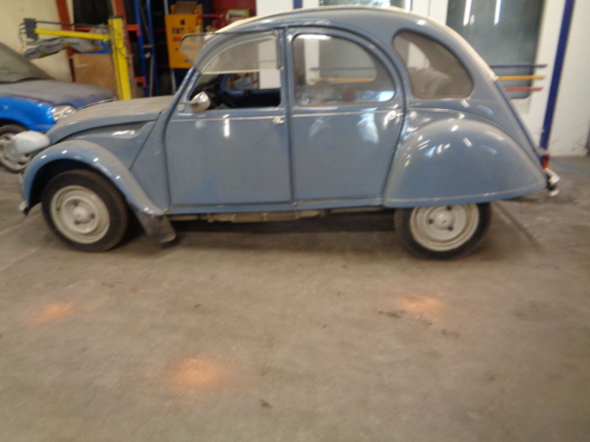 Il s’agit d’une 2CV6 Club de 1987. Elle a été vendu à un garage Peugeot en 2016 et stockée chez eux depuis. Le vendeur est un mécano à la retraite qui fait maintenant de l’achat/revente de véhicule.