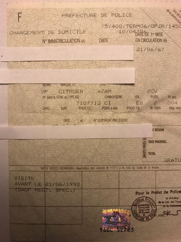 lucky40 a écrit : 02 févr. 2021, 12:29 :salut: Et question cruciale : Qu'en est il de la carte grise de cette deudeuche...avant toute chose, compte tenu de la complexité de nos jours à obtenir une carte grise, quelle soit normale ou de collection, ce serait ma première interrogation...avant même l'état de la voiture ! :salut: