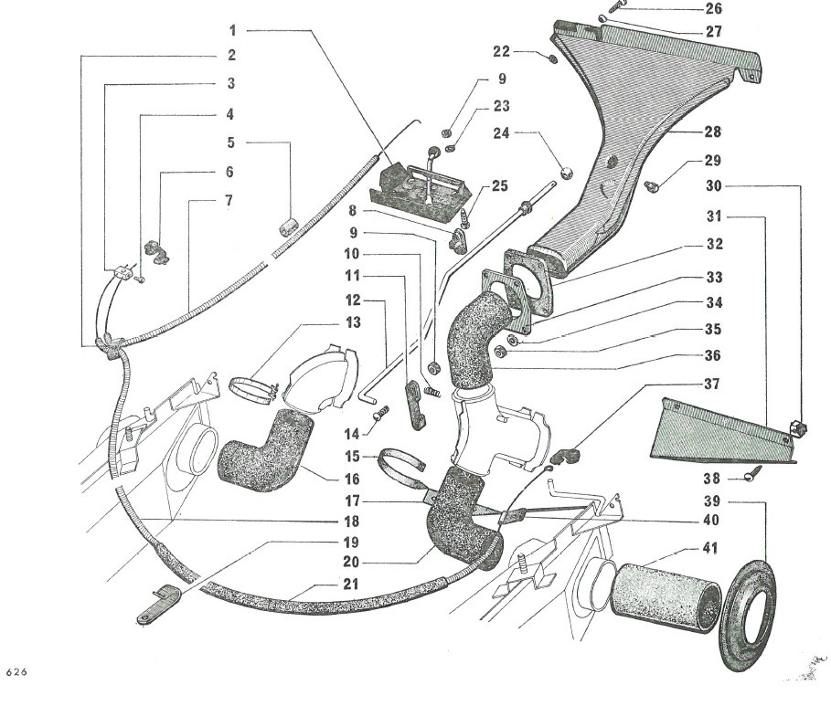 Bonsoir,réponse de la question No1,la patte No 19 est fixer sur une vis du couvercle du carburateur et sert a tenir le câble de commande du boîtier de chauffage :salut: