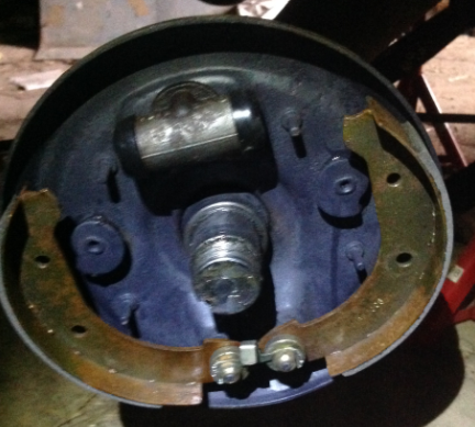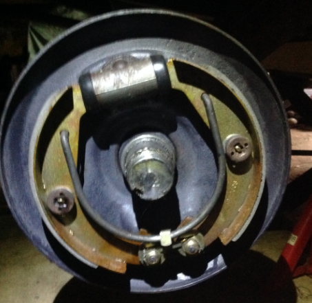 Et à la toute fin, remontage des tambours (avec des écrous de 44 neuf car le freinage des anciens les avait trop abimés), réglage des freins avec les escargots pour que "ça frotte mais pas trop" :) , purge du circuit de frein (regarder si il n'y a pas de fuite de liquide : ouf non !) et hop ! les freins arrière ces ok !