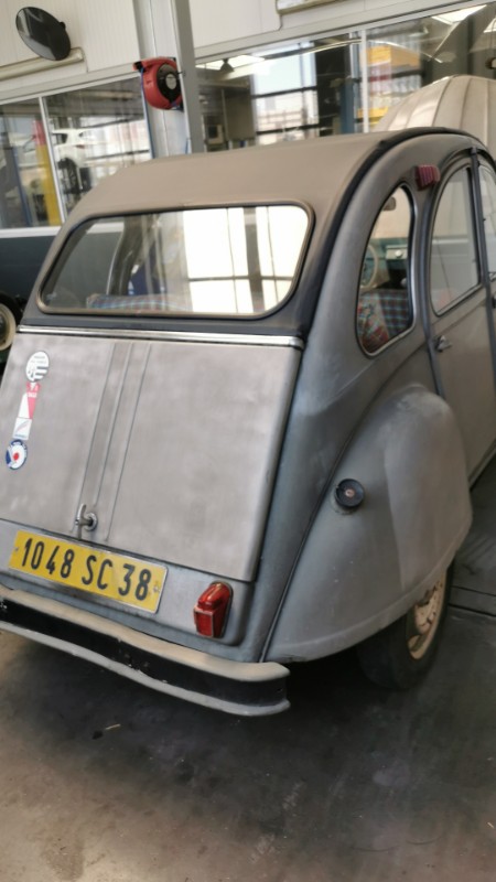 La 2cv est la au garage ou je travaille.